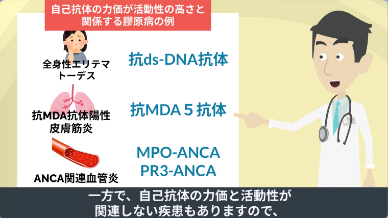 一方で、自己抗体の力価と活動性が関連しない疾患もありますので、疾患毎に判断していきます。