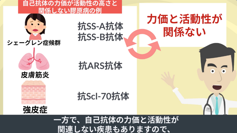 ただ、自己抗体を認める自己免疫疾患において、自己抗体の値、つまり力価が高いほど、より活動性の高さと関係する病気もあります。