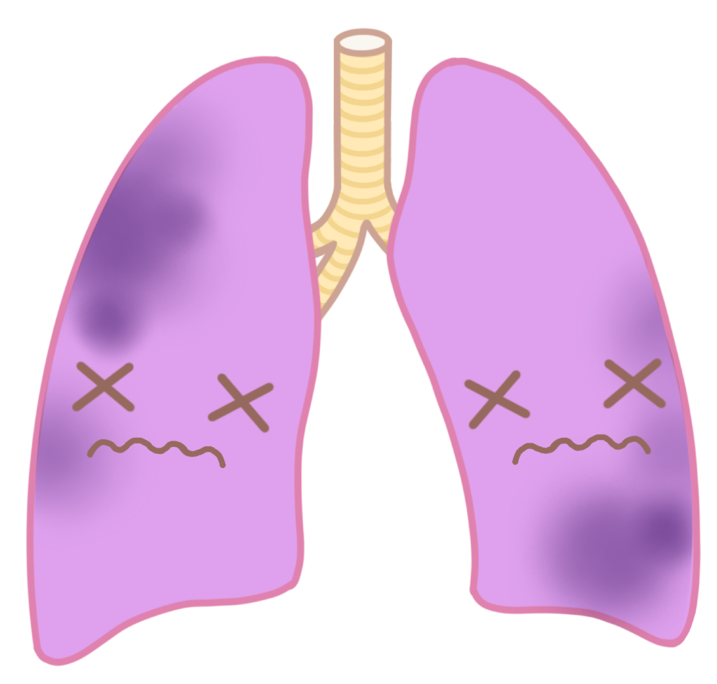 また、肺にも間質性肺炎を認めたり、