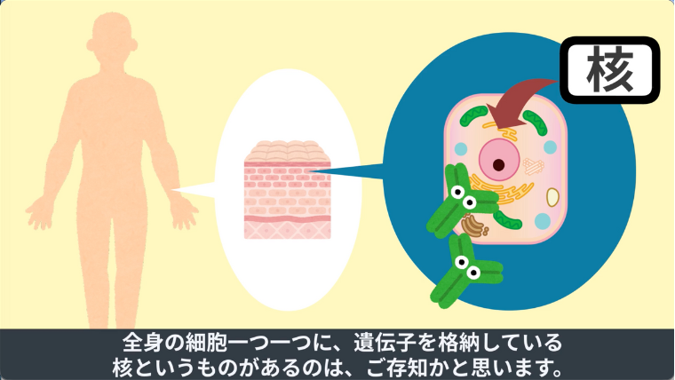 全身の細胞一つ一つに、遺伝子が入っている核というものがあるのは、ご存知かと思います。