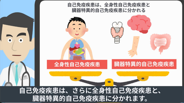 自己免疫疾患は、さらに『全身性自己免疫疾患』と、『臓器特異的自己免疫疾患』に分かれます。