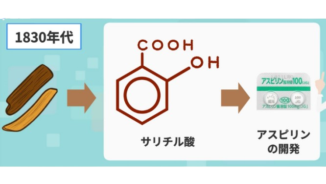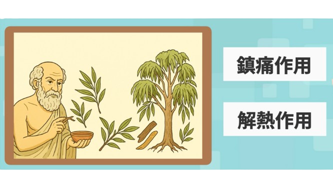 紀元前500年頃、科学や研究も無い時代にヒポクラテスがヤナギの樹皮や葉に鎮痛作用・解熱作用があることを発見しました。