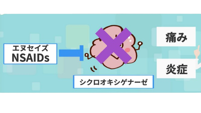 『シクロオキシゲナーゼという酵素を阻害して、痛みや炎症のもととなる成分の生成を抑える』