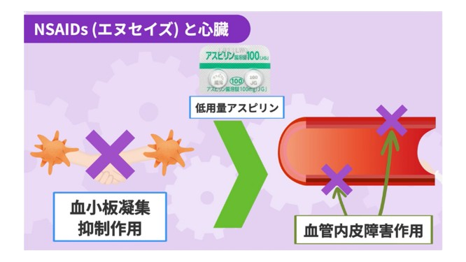 アスピリンは血小板の抑制作用の方が、血管内皮の障害作用よりも大きいため、