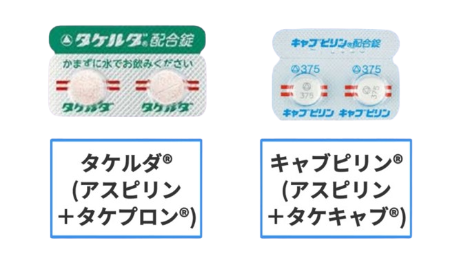 さらに、アスピリンとタケプロン®の合剤のタケルダ®や、アスピリンとタケキャブ®の合剤のキャブピリン®という便利なものまであります。