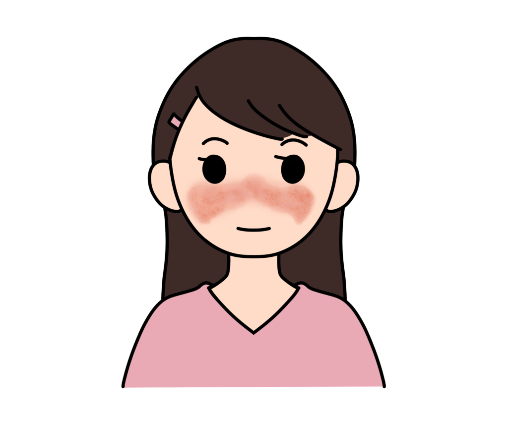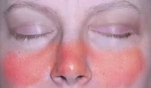 また、全身性エリテマトーデスでは、皮膚、特に顔に蝶形紅斑や