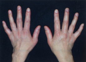 皮膚硬化を肘から指先だけに認めると、限局皮膚硬化型強皮症と言い、