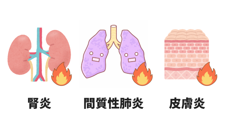 これによって、腎炎を起こしたり、間質性肺炎を起こしたり、皮膚炎を起こしたりします。