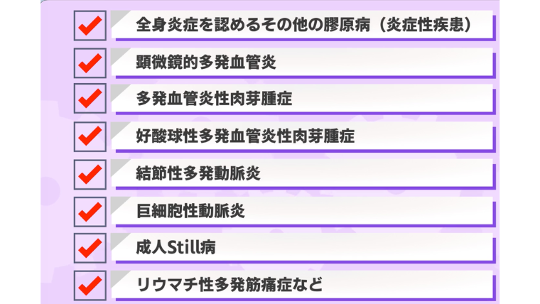 - 高安動脈炎やANCA関連血管炎といった血管炎