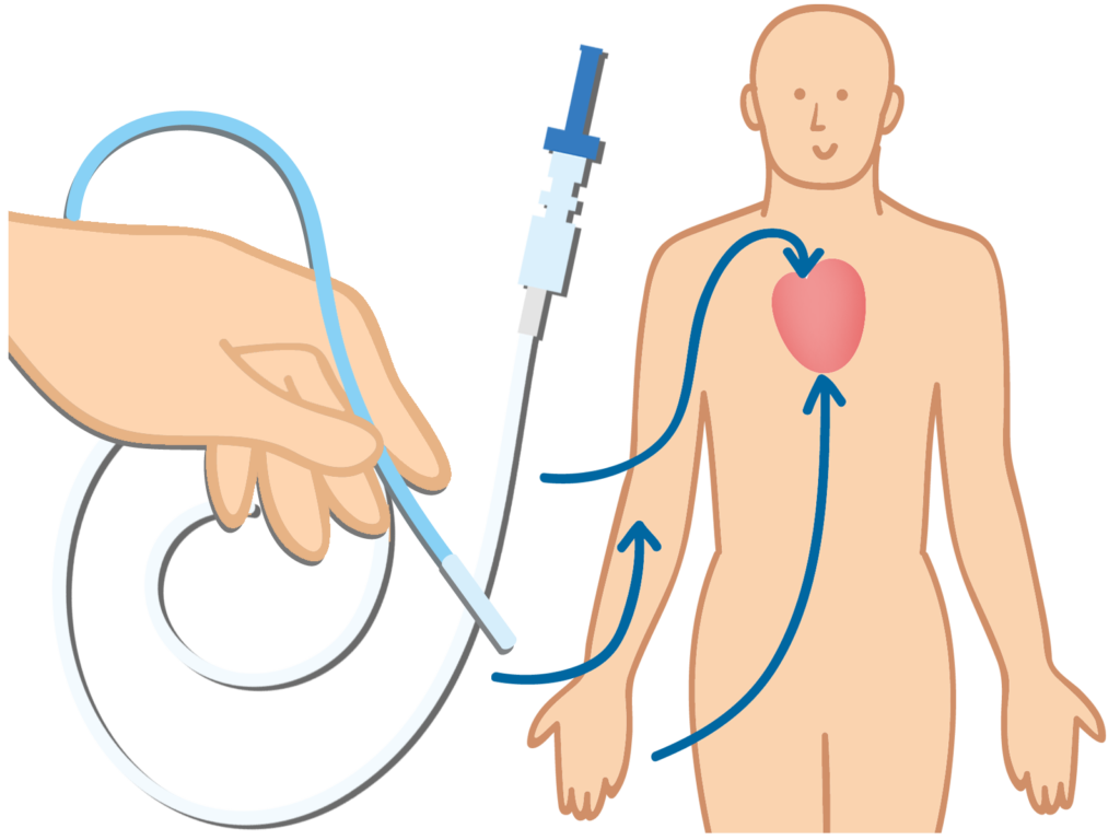 カテーテル手術は、カテーテルアブレーションと呼ばれ、カテーテルという3mm程度の細い管を使います。