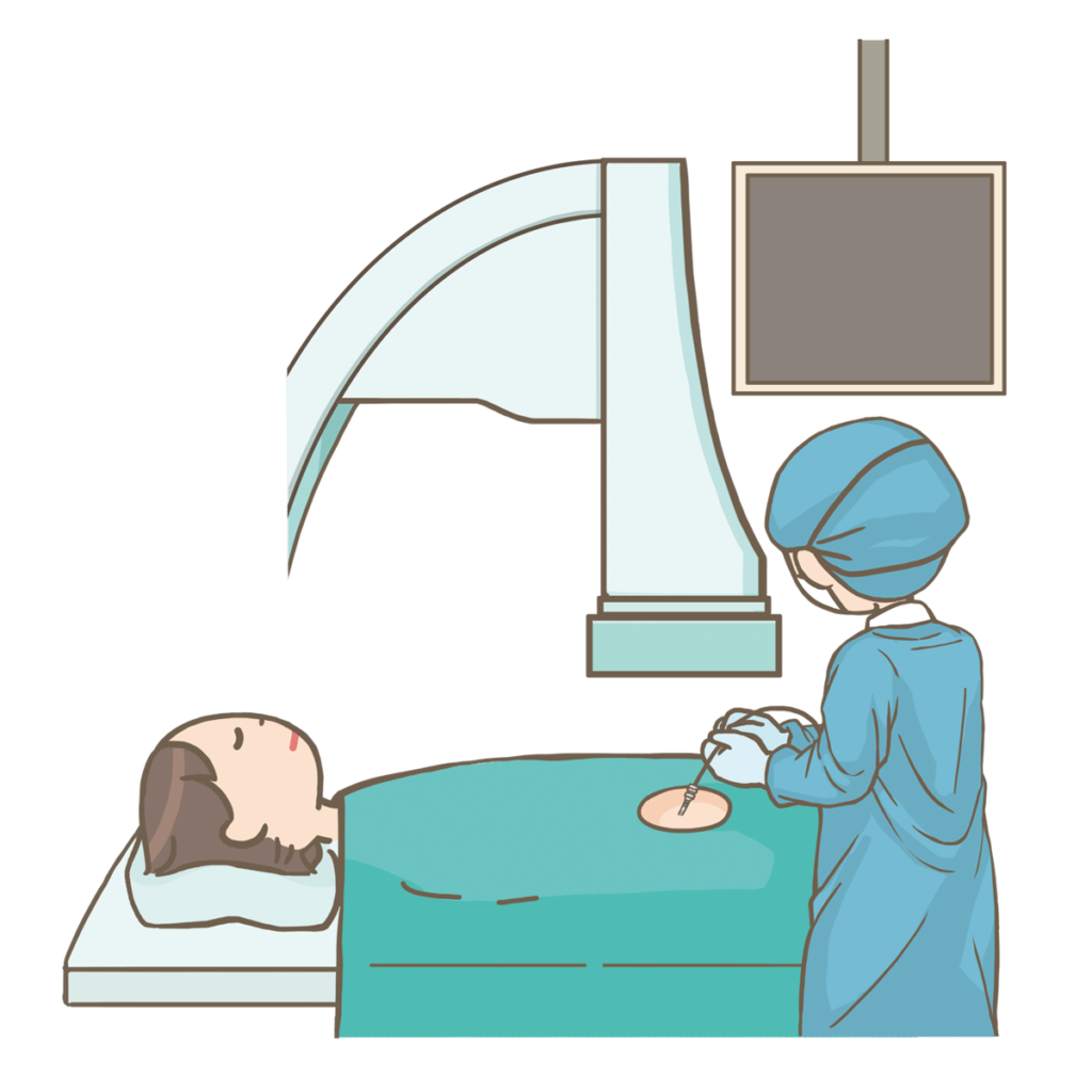 実際には処置の瞬間には痛みがあるので、点滴の眠り薬を使って眠った状態で行います。とはいえ20分もあれば終わるような処置です。